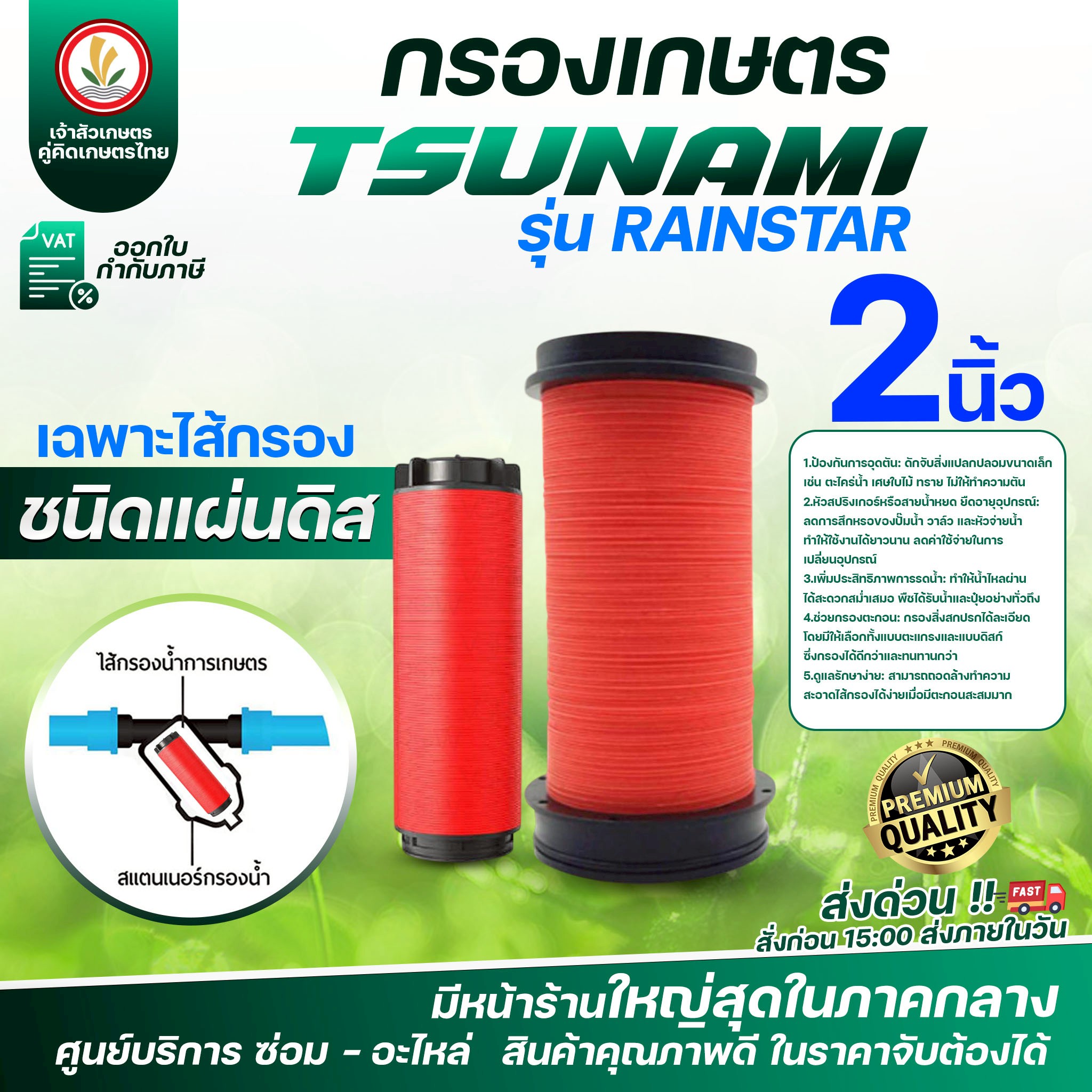 กรองเกษตร ขนาด 2 นิ้ว (เดินระบบน้ำเกษตร) แบรนด์ TSUNAMI รุ่น RAINSTAR กรองน้ำเกษตร (ชนิดแผ่นดิส) (ชนิดตะแกรง)