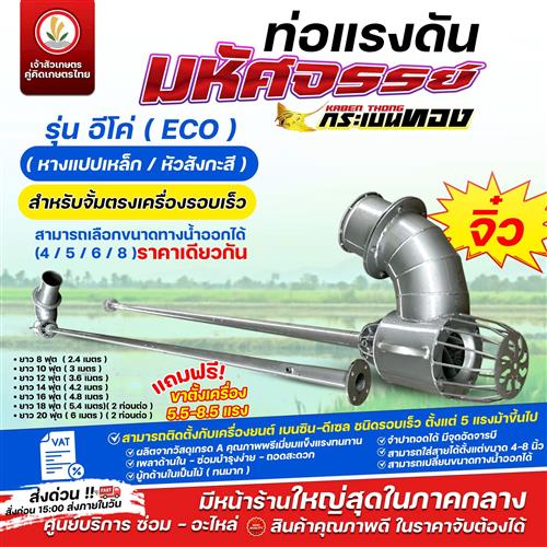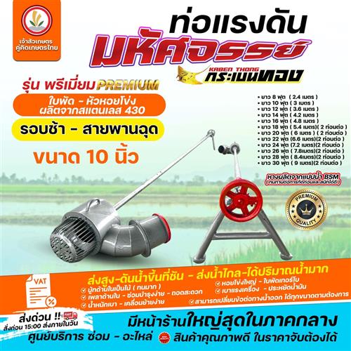 ท่อแรงดัน มหัศจรรย์ ตรากระเบนทอง รุ่น ซุปเปอร์ลูกทุ่ง (รอบช้า - สายพานฉุด) (ปากฟ้า) ใบพัด - หัวหอยโข่ง ผลิตจากสแตนเลส 304 ท่อแรงดันสูง ท่อสูบน้ำ