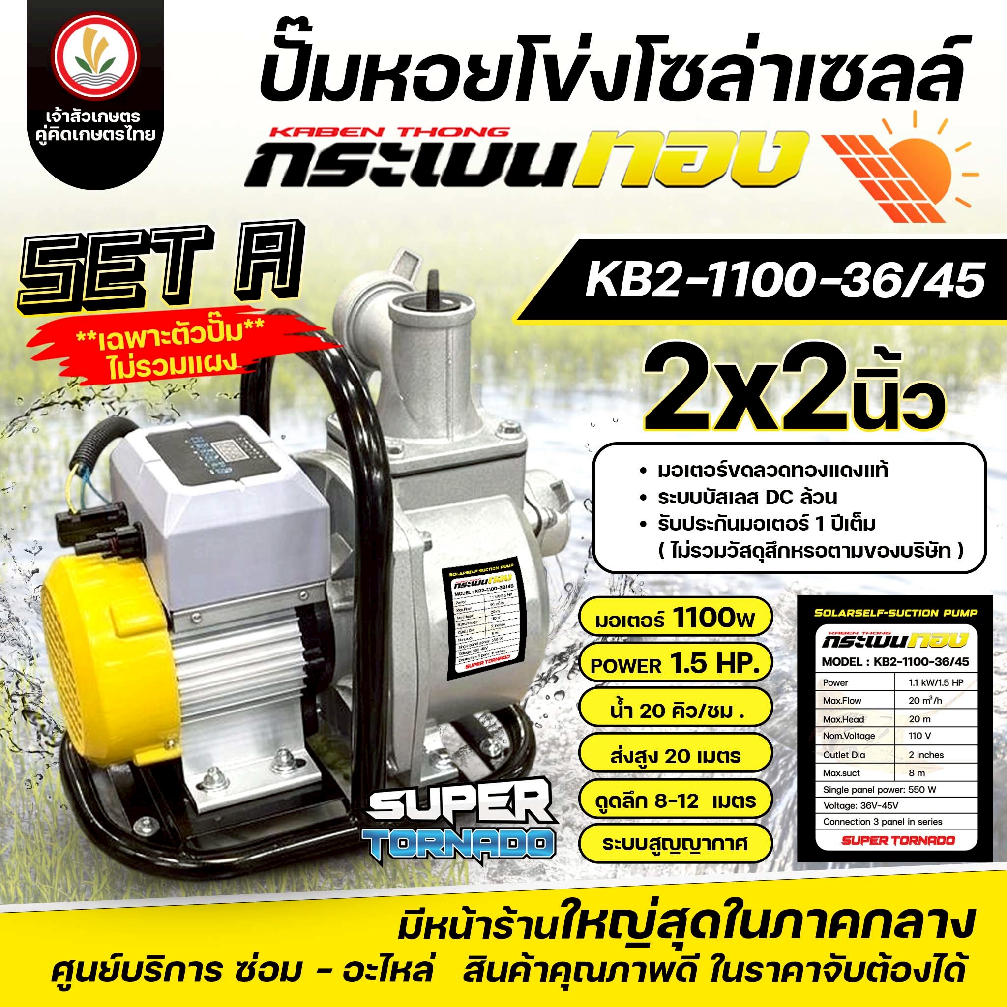 ⚙️ ปั๊มหอยโข่งโซล่าเซลล์ ตรา กระเบนทอง