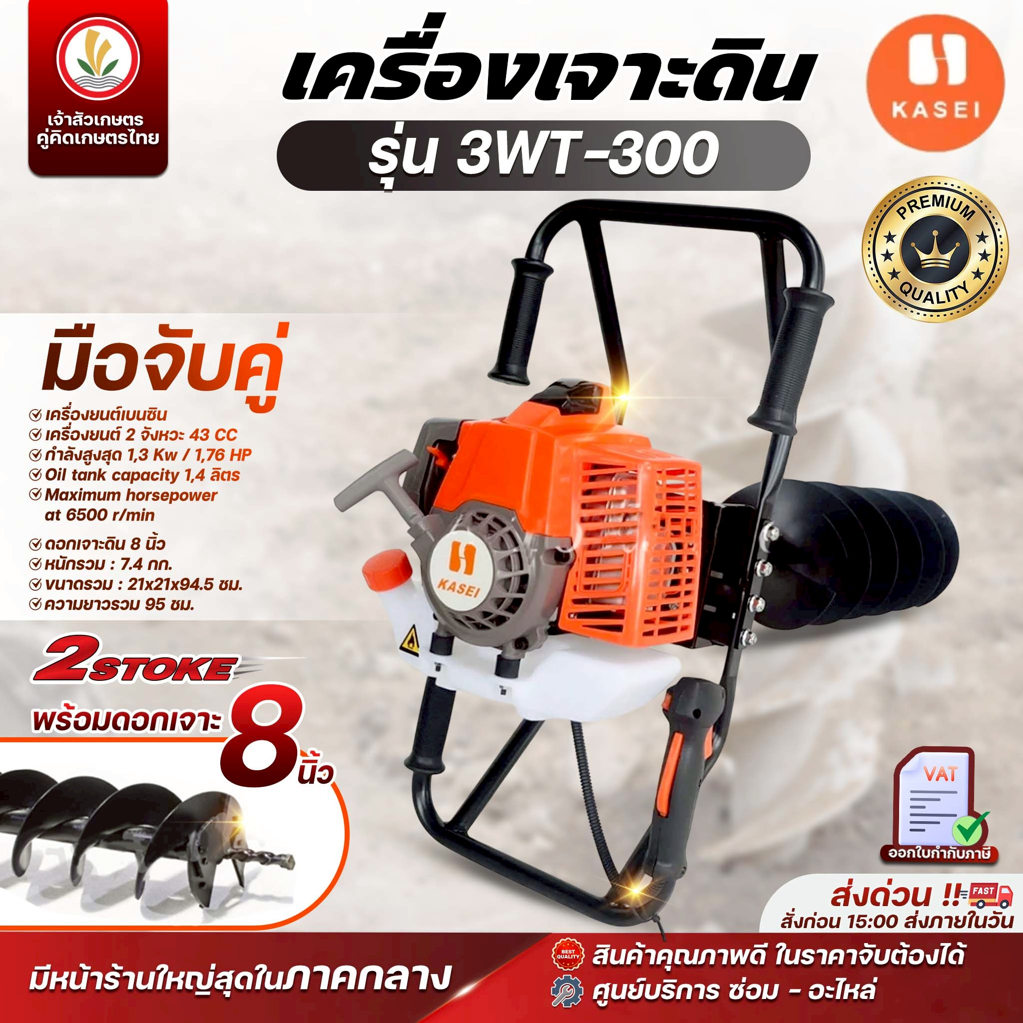 เครื่องเจาะดิน kasei 3wt-300 (รุ่นมือจับคู่) พร้อมดอกเจาะดิน 8 นิ้ว เครื่องเจาะหลุม เครื่องขุดหลุม คาไซ