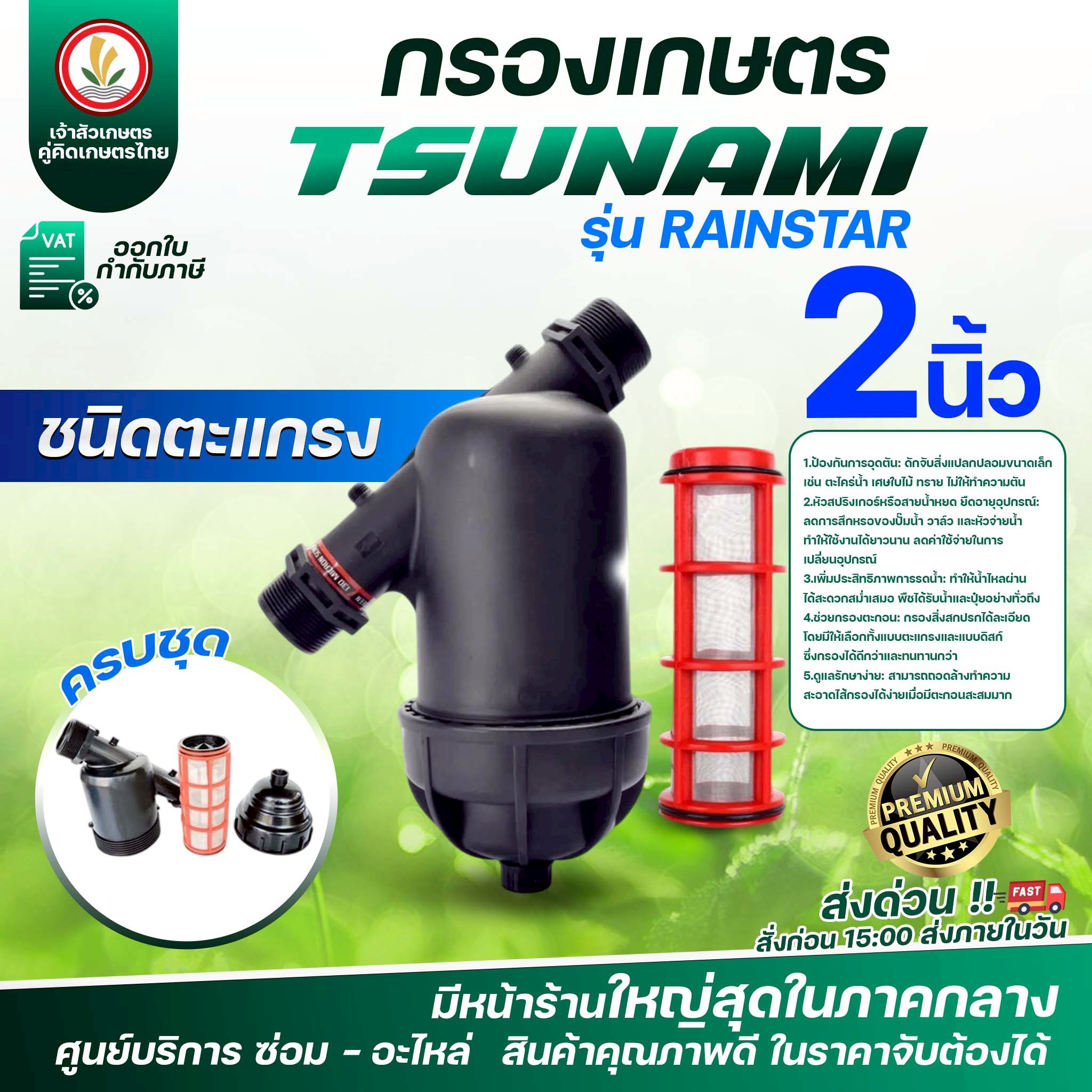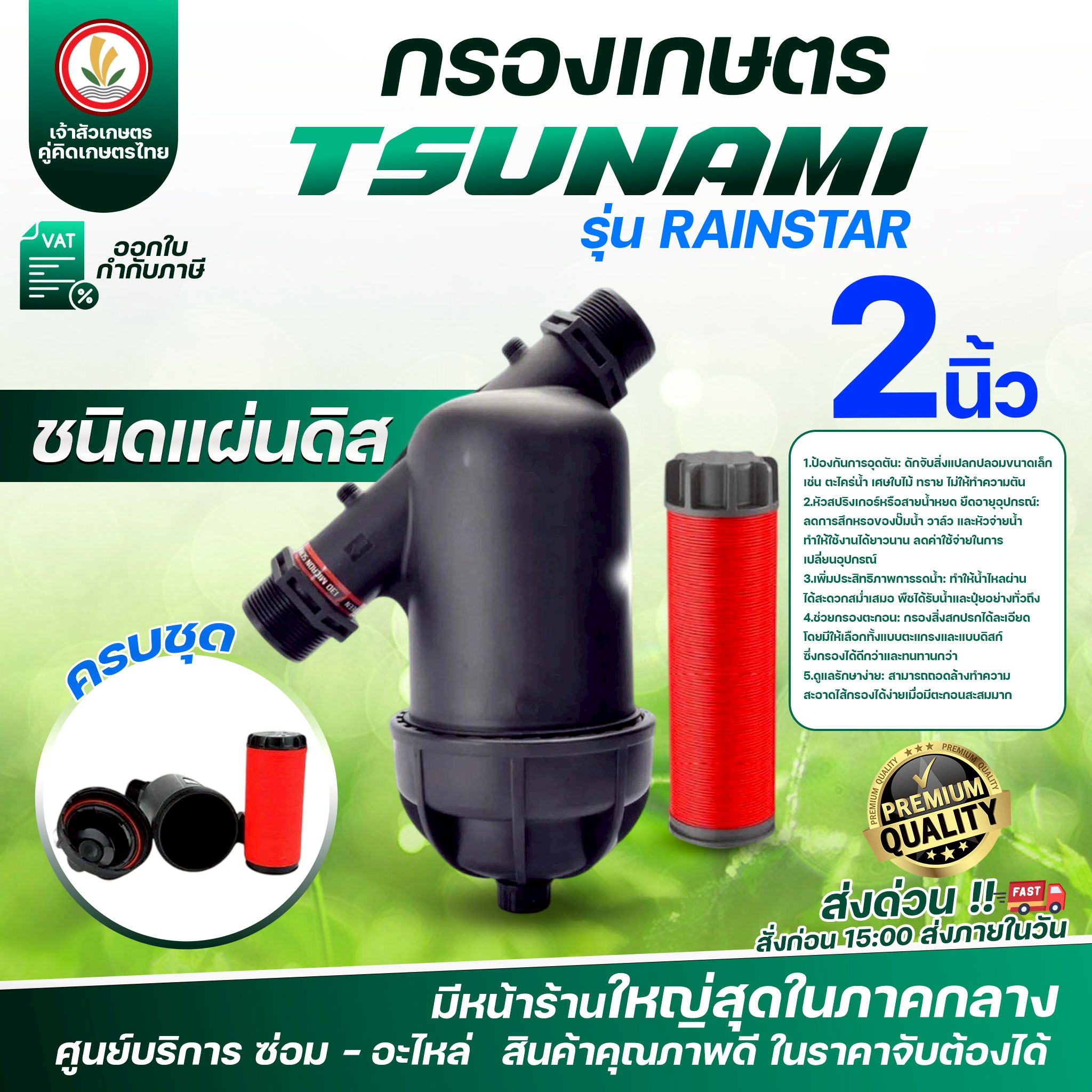 กรองเกษตร ขนาด 2 นิ้ว (เดินระบบน้ำเกษตร) แบรนด์ TSUNAMI รุ่น RAINSTAR กรองน้ำเกษตร (ชนิดแผ่นดิส) (ชนิดตะแกรง)