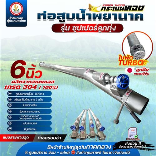 ท่อสูบน้ำพญานาค ตรากระเบนทอง (แบบสายพานฉุด) (ดีเซลรอบช้า) (รุ่นซุปเปอร์ลูกทุ่ง) สแตนเลส 304 มูเล่ฟ้า ท่อสูบน้ำ