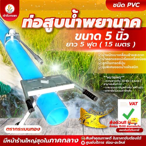 ท่อสูบน้ำพญานาค ตรากระเบนทอง ชนิด PVC (รุ่นพรีเมี่ยม) ชนิดจั้มตรง รอบเร็ว ขนาด 5 นิ้ว 6 นิ้ว 8 นิ้ว ( ท่อสูบน้ำ พีวีซี ท่อพีวีซี ท่อสูบน้ำpvc ท่อสูบน้ำพีวีซี ท่อสูบน้ำพยานาค )