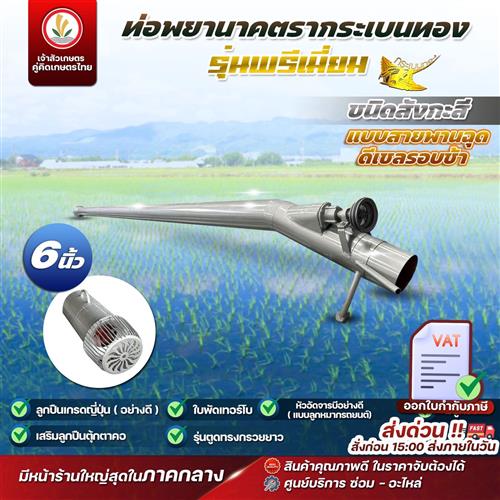 ท่อสูบน้ำพญานาค ตรากระเบนทอง แบบสายพานฉุด ดีเซลรอบช้า (รุ่นพรีเมี่ยม) ขนาด 6 นิ้ว 7 นิ้ว 8 นิ้ว ชนิด สังกะสี (รุ่นตูดทรงกรวยยาว) ท่อสูบน้ำ ท่อพญานาค
