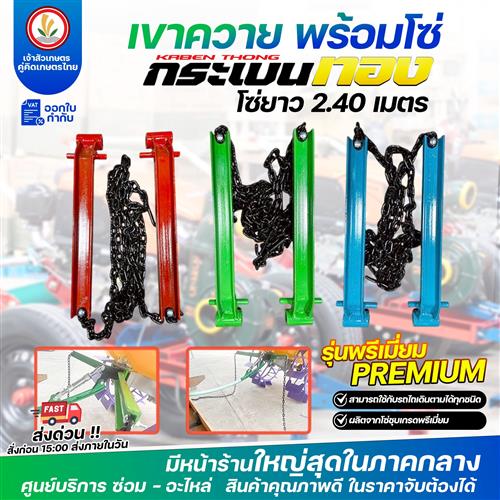 เขาควายพร้อมโซ่ ใช้กับกระดานลูบเทือก ติดรถไถนาเดินตาม จัดส่งคละสี ราคาต่อ 1 คู่ ความยาวรวมแขน 2.40 เมตร