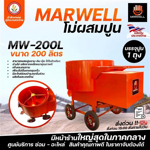 โม่ผสมปูน โม่ผสมคอนกรีต แบรนด์ MARWEL รุ่น MW-160L-750W ขนาด 160 ลิตร มอเตอร์ 750 วัตต์ ผลิตจากเหล็กหนา คุณภาพดี