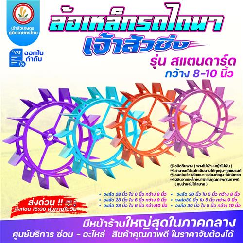 ล้อเหล็ก รถไถนา เจ้าสัวซิ่ง (กันฟาง-ใบเว้า) สำหรับรถไถนาเดินตาม (จัดส่งคละสี) มี 3 รุ่น สแตนดาร์ด ล้อเดฟ ล้อใบจอบ