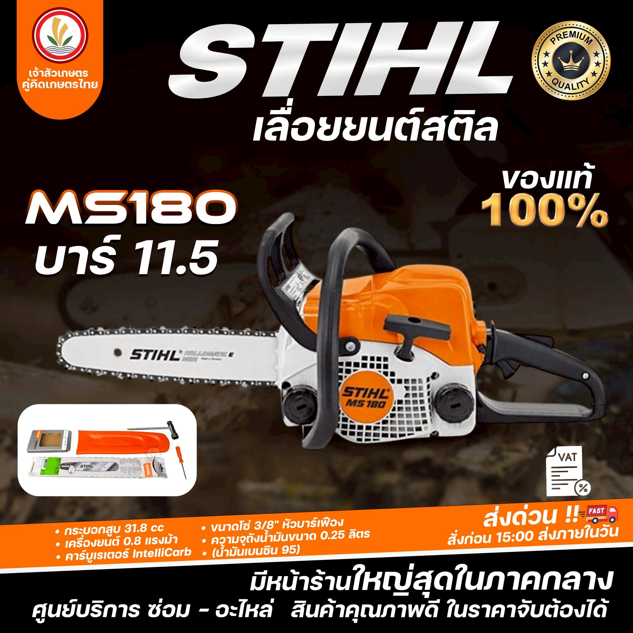รับประกัน1ปี เลื่อยยนต์ STIHL MS180 ของแท้ 100% - เป็นตัวแทนโดยตรงจาก บริษัท stihl thailand - ไม่ถอดเปลี่ยนอะไหล่ - ถูกต้องตามกฎหมาย ไม่ต้องขอใบอนุญาติอุปกรณ์ - กระบอกสูบ 31.8 cc - คาร์บูเรเตอร์ IntelliCarb - เครื่องยนต์ 0.8 แรงม้า - ขนาดโซ่ 3/8″ - หัวบาร์เฟือง - ความจุถังน้ำมันขนาด 0.25 ลิตร (น้ำมันเบนซิน 95)
